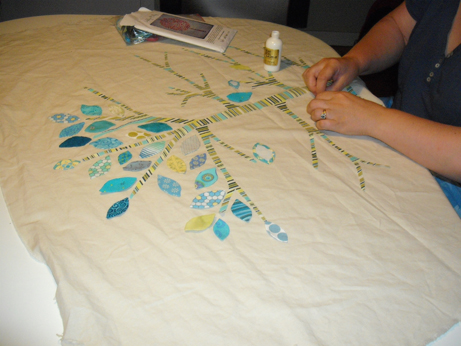 I managed to get a bit of knitting and stitching done as well and spent quite a bit of time talking to Anita about quilting. She has recently set up her own business doing quilting of other people’s pieced work as she now owns a long armed quilting machine so we spent all of the journey to Centerparks discussing her flourishing business and ideas for my future one. She had also brought along a project – a very unusual applique tree. You really must go and have a look at the designer’s site – is is fab!