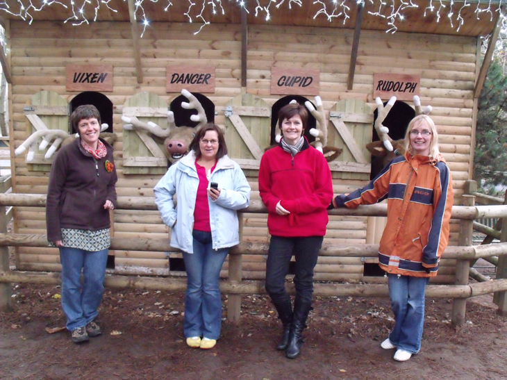 We did not do loads of activities as we spent lots of time reading magazines. eating lovely food, drinking wine and laughing but we did manage a couple of saunas, walks in the woods, swims, visits to the jacuzzi , feeding the ducks and swans and a little (and quite muddy!) bike ride. The place was all decorated for Xmas and here are some of the girls visiting Santa’s reindeer.