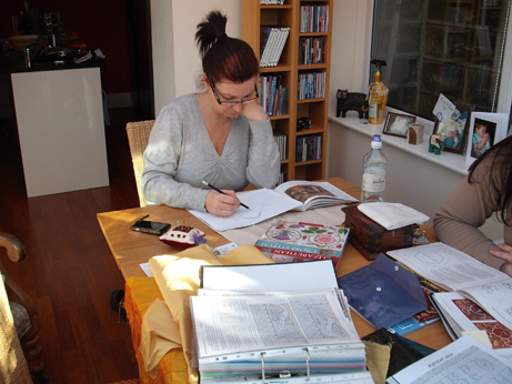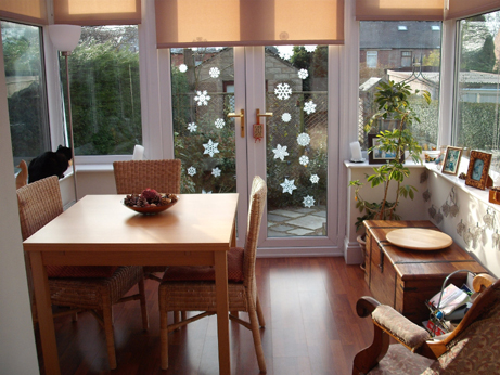 The dining room is my creative space for large projects and sewing and is one of my favourite places to be as it has a lovely view of the garden – my cat Blackberry also likes being in here – in the above pic you can see him sitting in his favourite place on the left hand windowsill above the radiator watching the birds!