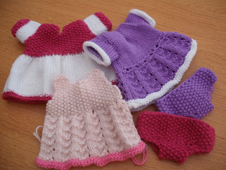 I have really enjoyed knitting this, especially the little dresses – it seems, as with my stitching, that I like doing small projects best. I have even had a quick peak at the Jean Greenhowe site recently and admired all her characters. I shall aspire to become one of those little old ladies who knits endlessly for church fetes!