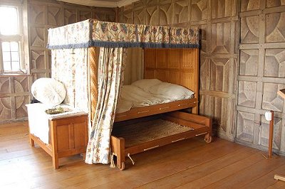 The ‘painted’ title refers to the wood panelling – though the vertical and horizontals panels are real the rest of the 3D effects are painted on. The room reminded me very much of the bedrooms in Tatton Hall that we visit every June – with again beautiful bed hangings. It was such a privilege to be in that room – especially when we were told that was where the ladies of the house used to sit, embroider and gossip!