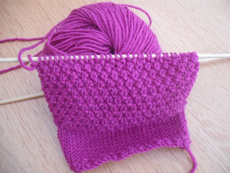 I have actually been very cosy the last couple of evenings sitting in my thickest sleeping bag knitting away and have finished another pair of wristwamers, the moss sitch ones that I cast on last week from Creative Yarns . Here they are in all of their lovely pinkness!