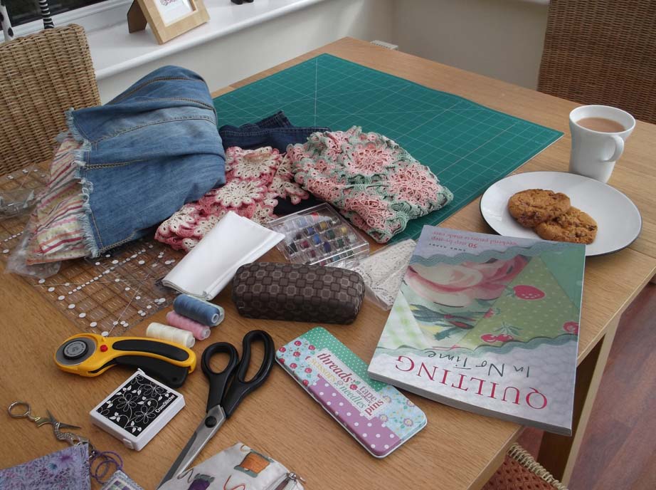 I had a lovely time playing with fabric and ideas – tea and cookies essential for the creative process of course!