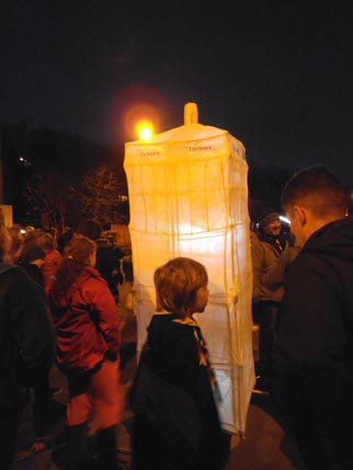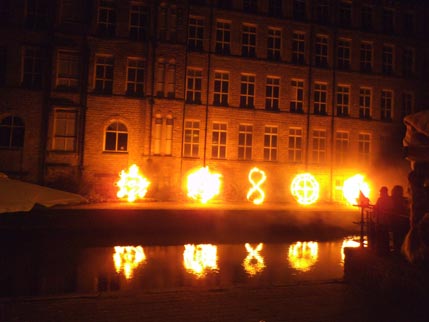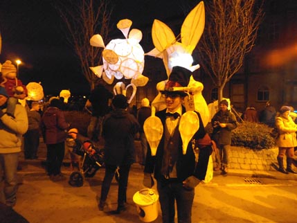 The festival is a parade of willow lanterns that are made throughout the week at workshops. The parade also involves lots of bands and culminates in brilliant fire sculptures and fireworks.