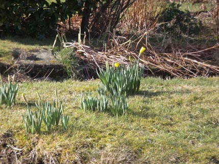 Today I walked along the canal to the village again, it was a beautiful sunny day and I saw geese and the first signs of Spring, these lovely daffodils outside one of the canalside cottages.