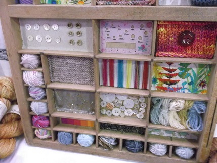 I think it is an old printer’s drawer but thought something like this would be an excellent decoration for my craft room, loved all the little balls of wool and buttons!