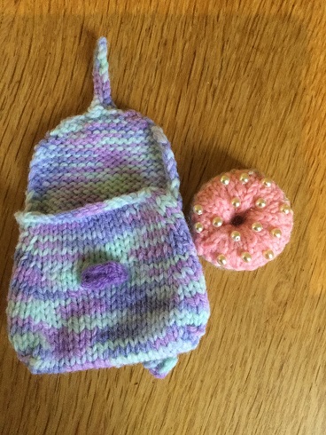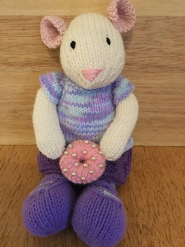 The first one is that I have just knitted a doughnut! Well I have actually knitted two but this one is the first to be fully finished with all its little beads. This is to go with the little mouse below. These are so quick and easy to make and from a free pattern from Julie’s Ravelry page, which is linked below.