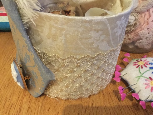 I had ordered some embellishments for the hat this week, I was so pleased with the cameo, which I found on Ebay. It goes brilliantly with the blue material.
