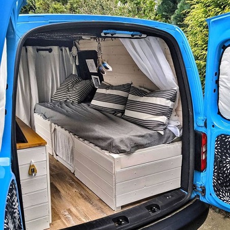 This first one is from Kangoo Cottage Camper, who has an Instagram account here. This just shows how much you can get in one of these vehicles.