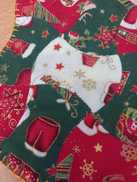 Debbie is a very experienced and talented quilter and she brought her apple core coaster back the following week to finish off. I had taken some of my stash to share with the group and she has used some of the Christmas fabric that I had to make this lovely design. Her stitches are so tiny and neat!