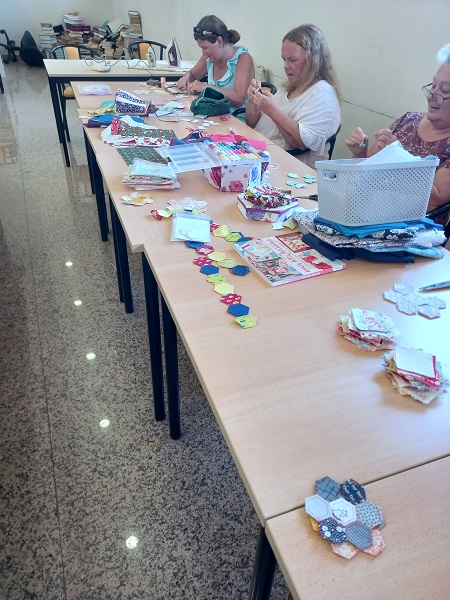 One of the things that I wanted to do when I got here was find some crafting friends. I thought that there must be a group in a place as big as this, with so many retired women and so after some searching I found a post on the local Facebook page. There are actually two groups, a knitting and a sewing one, but many people attend both. So every Tuesday afternoon and Wednesday mornings I go to the local Escuela de Adultos, which is the adult education and social centre at one of the shopping areas here.