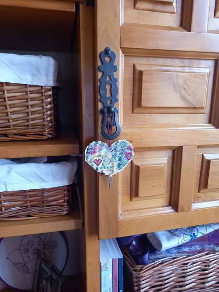 I have finally finished buying the storage to go in it, and arranging all of my stash. I am so pleases with it as not only does it look lovely, it matches the doors in the house and is very traditionally Spanish in style, it is also narrower than the wardrobe so gives me more space to sew.