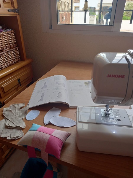 We have a quiet week this week as our trip to Cordoba has been cancelled by the coach company. Sadly there are no other options but we will be doing some day trips instead this autumn. At least that gives me lots of time to enjoy the new sewing space. The knitted reindeer are coming on well, all body parts are done and I am on with the shorts for the boy.
