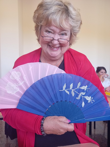 The craft fair was held outside the charity shop on a rather hot day yesterday, it has been unseasonably warm here and it was about 24 degrees yesterday so I was glad that I was in the shade. Many of my friends had their crafting for sale. I bought this gorgeous mandala dream catcher for my bedroom from Gale.