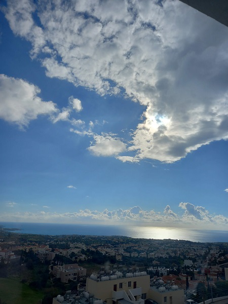 I was staying only 10 minutes walk from the beach, just outside the centre of Aiya Napa, in a lovely studio apartment, River View Boutique Apartments. I can highly recommend this, if you come here. The apartment is beautiful. It has a little kitchenette, and an all important sunset over the sea view.