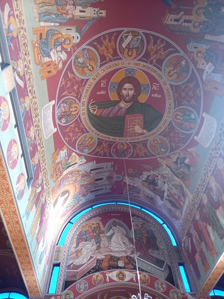 It doesn’t really do justice to the absolutely stunning ceiling, which was painted in the most gorgeous shade of blue. There was also an amazing reliquary display next to the church. Many items have been donated to the monastery by visiting officials, and there are multiple saints’ bones in decorated caskets here.