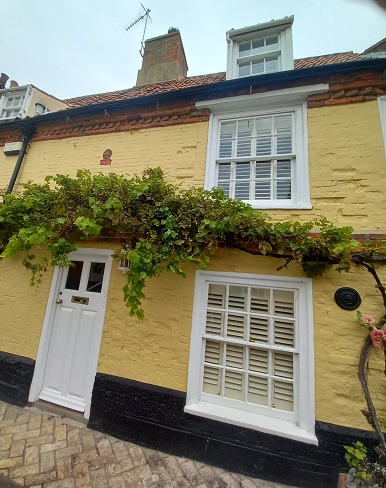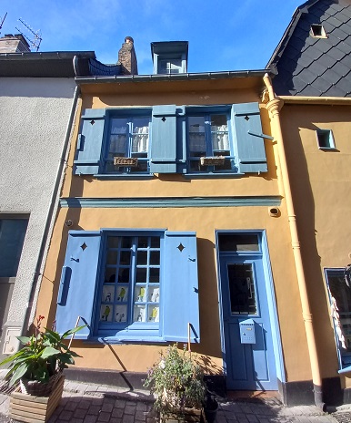 It was only a short walk into the very pretty town, down some tiny cobbled streets with very cute cottages. I loved all the shutters, and you will see lots of pictures like this in the coming posts!
