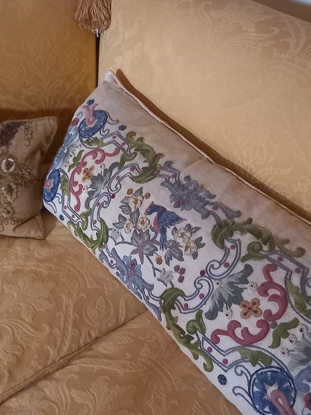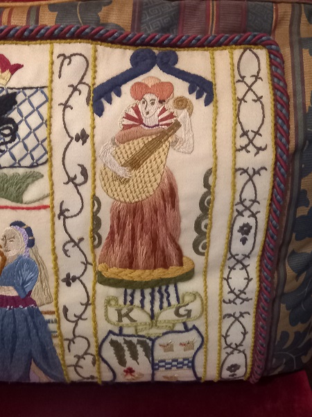 There was a cushion on one of the seats that had used elements from the ceiling as its inspiration, clearly a modern one, and on enquiry at the main desk I found out that it had been stitched by some of the castle volunteers. Just beautiful, and what a great way to add to the furnishings in the castle.