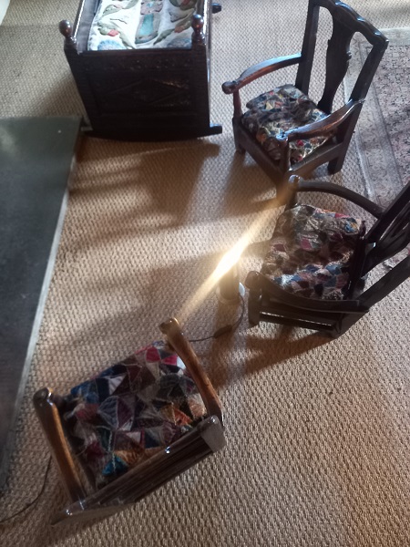 There were also some later dated things of interest, including these lovely Victorian crazy patchwork nursery chairs. I love imagining the gowns that these bits of fabric were offcuts from.