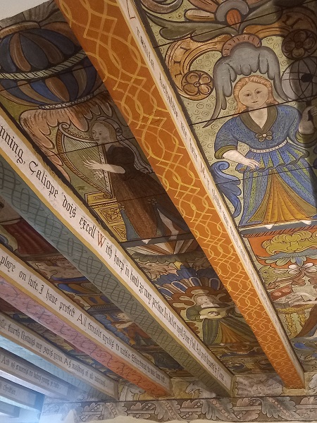 The Muses and Virtues ceiling was of particular interest to me, as at Hardwick Hall there are a number of hangings that Bess had commissioned with same themes, and they would have been created at around the same time.