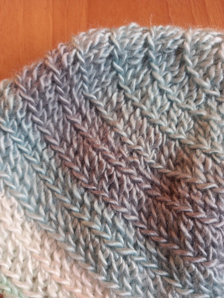 It was very successful as you can see, so I made her three more for Christmas. The first two, the grey and variegated wool one below were using this Drops Design pattern.