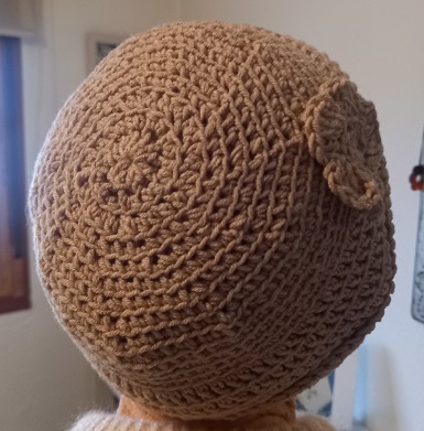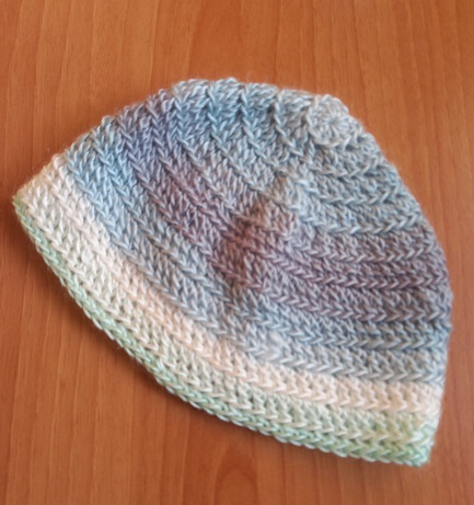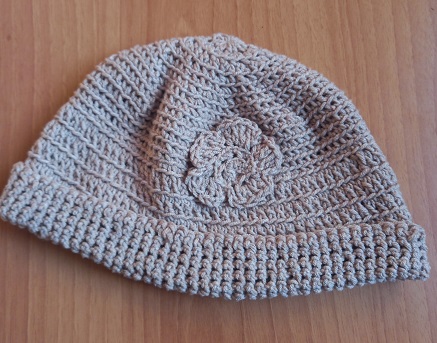 The others are adaptations of a Summer Cloche Hat that I found on Ravelry. As I can only do a few limited stitched at the moment, I varied the design by doing some rows of treble, then double rows for the border and the brim on the beige one.