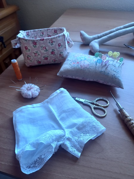 The French knickers were another use of fabric from the reuse stash, I managed to cut the edging lace from an old sun top. I am very pleased with the fit of these, much better than my first pair.