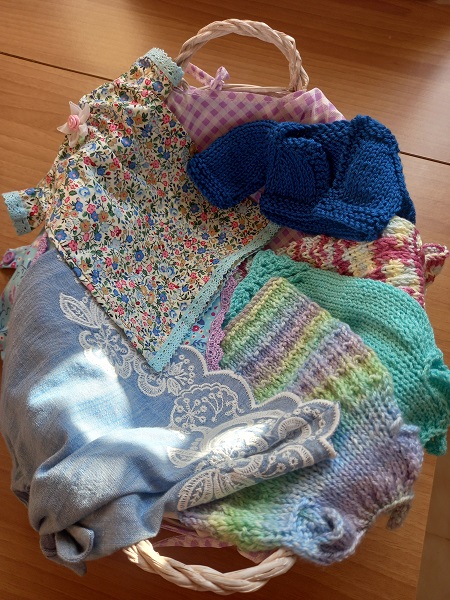 All of the knitted items come from the Little Cotton Rabbits patterns, all from the Textured Dresses pattern. I just knitted them on slightly bigger needles, and lengthened the dresses. the lace edged design is one of my favourite patterns to knit.