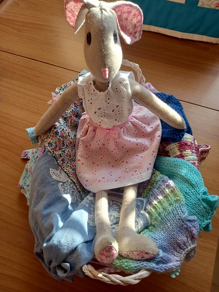 The fabric dresses all come from the various Luna pattern books, I have tried to use as much recycled fabric as possible from my charity shop stash, and was very pleased with my use of this beautiful edged soft denim fabric for the tie shoulder dress.