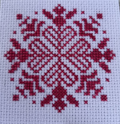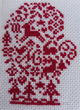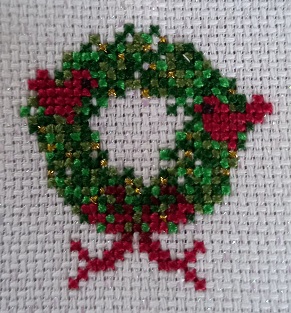 I completely forgot to take photos of my finished ornaments for this year, as I was in a rush to get them all packed up for postage, so you will have to make do with just the stitched part.