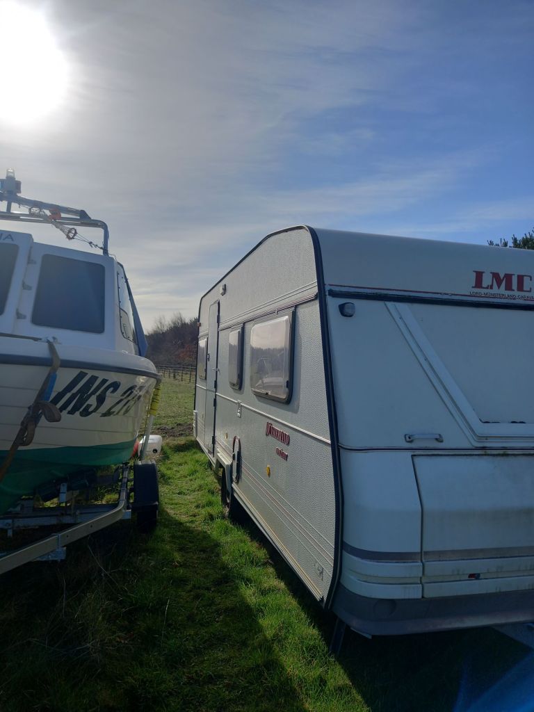 I was originally planning to be here on the 12th March, however the towing date had to be changed, so Lotte and I set off from her winter home at Lossiemouth on the 17th. She had been parked next to a boat. She was a little green, but otherwise in good condition externally.