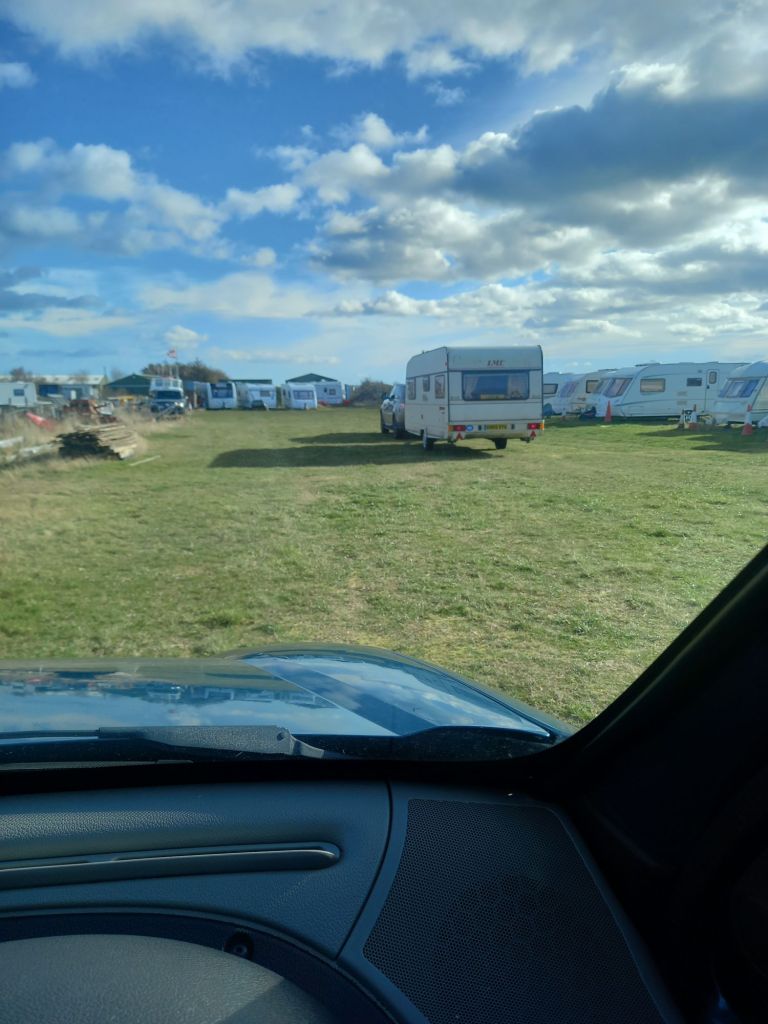 The site also looks very different,  rather than lots of well cut grass, it is mainly hardstanding pitches around what is known as, ‘The Mound’, a raised area with paths mown through it, with the most amazing views.