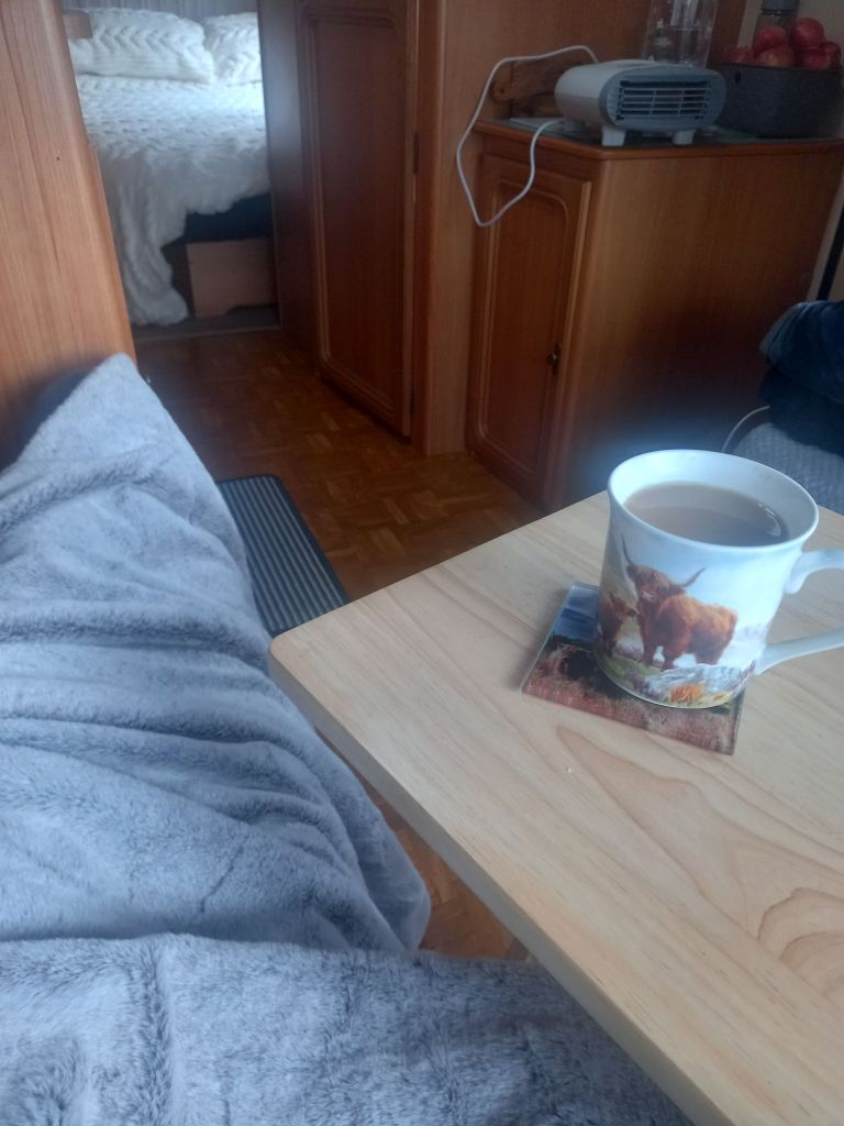 I am very glad that I did buy the lovely fleecy duvet set that was on sale in Asda at Inverness. I was in two minds as I already had a van full of stuff, but it has been so cosy!