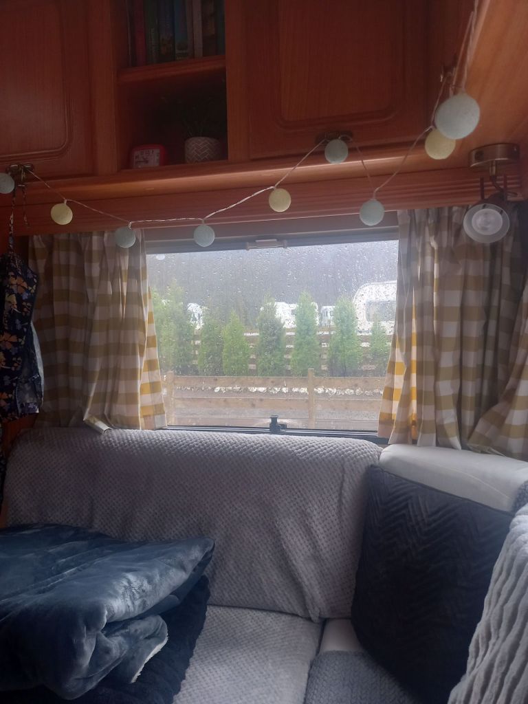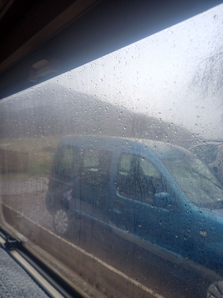 It is a very dreich day, as the Scots say, this is my current view from the van, and sadly all those people coming for the weekend have a bit of a mixed forecast to look forward to. However, I have tested my waterproof trousers already, and am good to go!