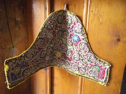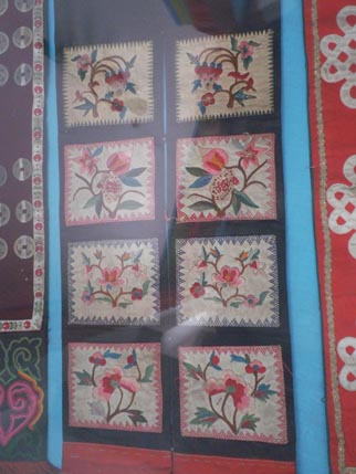 There were themed displays of footwear (including the very sad lotus feet shoes for bound feet), bags, headwear and gifts – these little embroidered tokens of love and affection are called henbao.