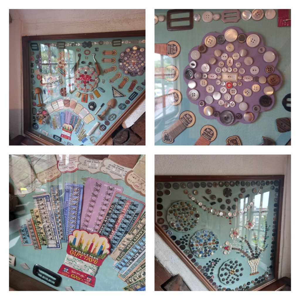 Someone was clearly a keen collector of embroidery as well, as there was this display case. Sorry for the poor picture, but there is a Georgian waistcoat, as well as shoes and bags.