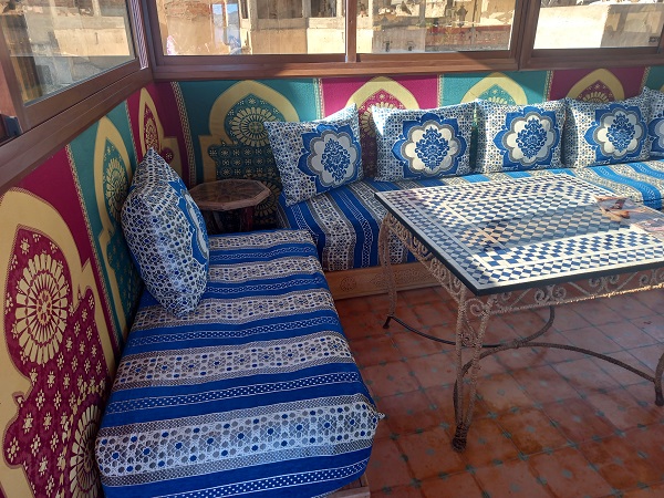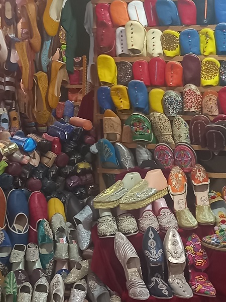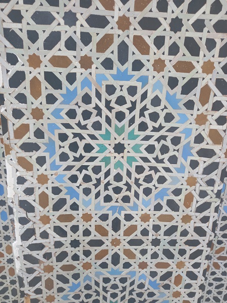I did see quite a few shops selling traditional embroidery and textile goods as I wandered through the medina, as well as more modern kaftan shops. I was also very excited to see a little zellige workshop in the medina near my riad. I stood and watched the artisan chipping the tiles for a little while.