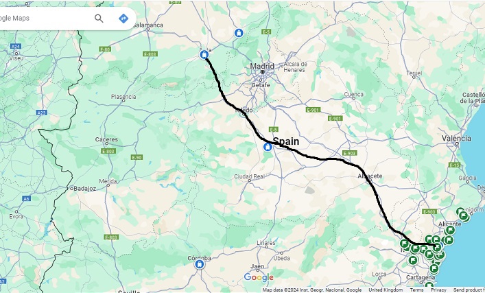My very last stop was a short drive from Segovia, along very quiet country roads and through the city itself, not quite as challenging as Segovia, to my park up just outside the city. On the map below it is just to the left of Madrid, partly covered by my little pin! It is at the foot of the mountains, so in a gorgeous location.