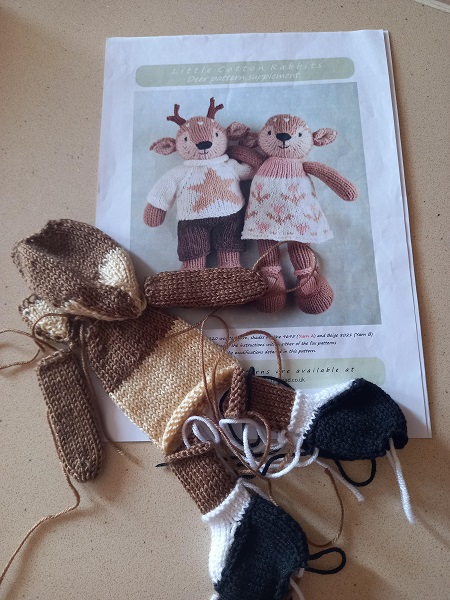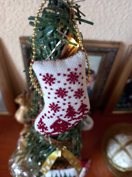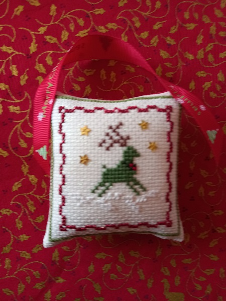 I had a bit of emergency knitting to do in between the cross stitching. You may remember last Christmas the fundraiser was a little knitted mouse. Debbie, from our knitting group won it and gave it to her granddaughter in the USA. Sadly she left it on a plane and was very upset. Luckily I had most of a mouse in bits in my stash, and some spare dresses, so she had a replacement to give her on Christmas Day.