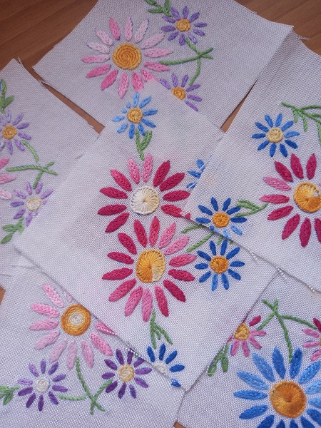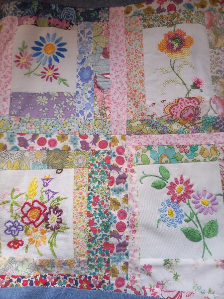 I also got around to tackling the WIP pile. I have a lot of embroideries, mainly of designs from Jenny of Elefantz, that I have been meaning to make up into something. This one got as far as being given one of my favourite Churn Dash block surrounds, but has been languishing in the pile for at least six years.