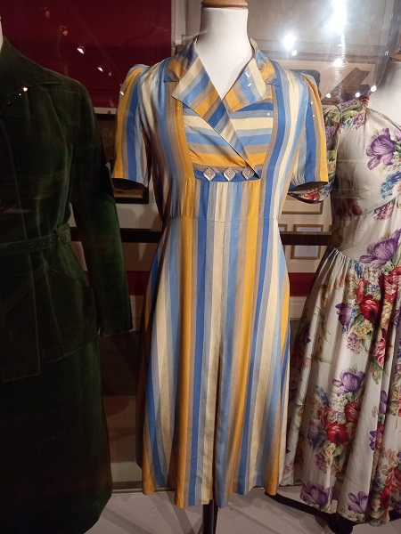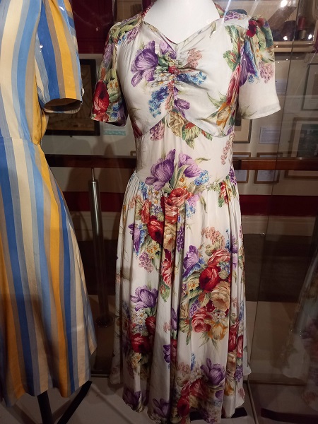 This ensemble was made from some raw silk, I love working with this fabric and was keen to experiment with beading. With hindsight it would have been easier to bead the dress before I made it up, but I like the colour graduations on the beads.