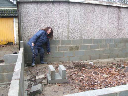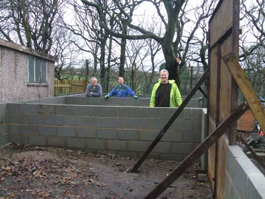 As part of the project we are learning some practical skills so that when we get to Nepal we can build with confidence (and hopefully with straighter walls than we have been doing so far!). We have had training weekends once a month since Sept at the local Scout camp site where we have been learning to do bricklaying and joinery. At the moment we are building some storage bays out of blocks with timber framing on the top. Below are some pics from this weekend of my handiwork and some of the team.